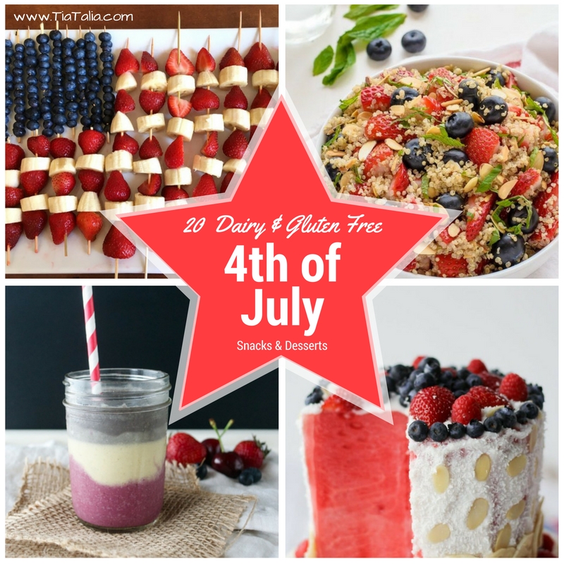 We hope that you enjoy this 4th of July recipe round up of red, white and blue, gluten and dairy free snacks and desserts! And we wish you a very happy, fun and safe holiday weekend! God bless America!!