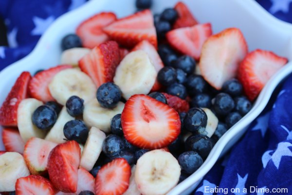 If you’re in a rush and looking for a super-simple dish to bring to a weekend potluck, just add some cut up some strawberries and bananas to a bowl of blueberries and….voila!…you have a beautiful 4th of July fruit salad. Easy peasy!